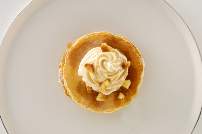 甘さを控えめにしたパンケーキとトッピングの組みあわせで、
