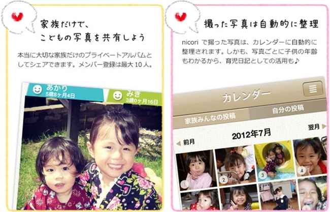 ~「子供」の成長記録で「家族」がつながる、新しいコミュニケーションの形~ 家族限定クローズド写真共有アプリ「nicori」(ニコリ)をリリース 2012年9月20日(木)より提供開始