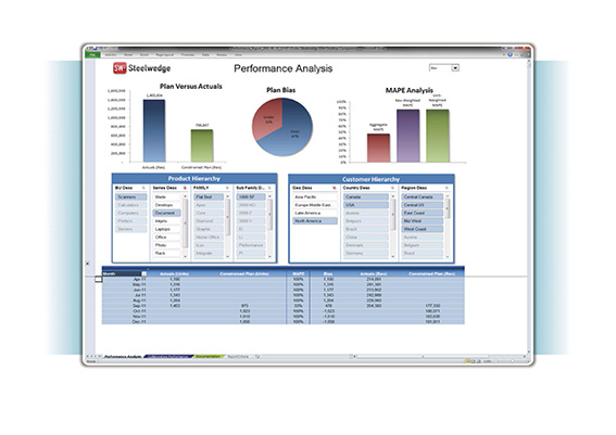 産業アナリストはS&OP分析能力がより優れた速い計画決定に絶対必要なものと認めています。しかし多くのサプライチェーンアナリストは、今日、事業遂行データとS&OP計画の間に大きな隔たりがあるとも指摘しています。対照的に、スティールウェッジは分析機能を顧客のサプライチェーン運営の中心、つまりそれが必要とされている現場、に落とし込んでいます。