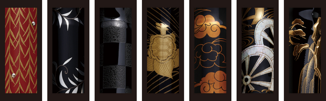 ラインナップは、一昨年の2011年10月、京都ならではの感性とこだわりの新しい Made in Kyoto を結集した展示会「COOL KYOTO 2011」にて発表され、大きな反響を呼んだ「金蒔絵」に加え、「白檀塗り」「研出蒔絵」「平蒔絵」「高蒔絵」「蒔絵と螺鈿(らでん)」といった漆工芸の伝統的な技法を駆使し、日本伝統の図案を描いた全7種としました。一本一本手作りによる完全受注生産のため、ご注文から商品のお渡しまで約3ヶ月のお時間をいただきます。また、工具としては破格の値段ですが、「美術工芸品」としての価格設定となっております。