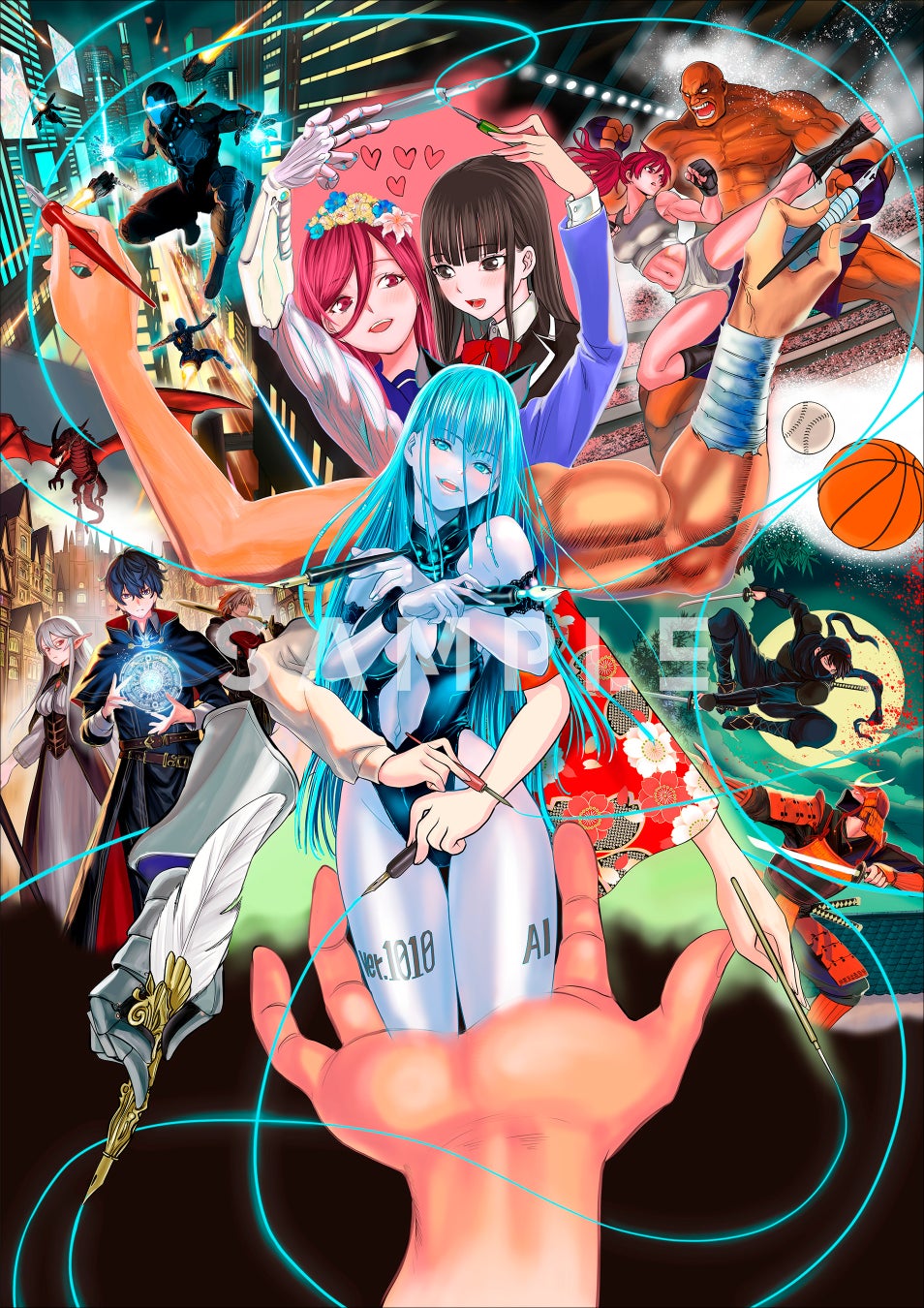 本プロジェクトには、高河ゆん・福田宏・渡辺明夫・黒丸・士貴智志・黒田bb・山田恵庸・東毅といった、メジャーで活躍する8人の漫画家(一部はキャラクターデザインや作画監督として活動)が参加。「AIと漫画家の共存・対立」をテーマに、AIとの葛藤を鮮やかに描き出し、肯定か否定か——作家自身の感情を呼び起こす、渾身のアートを制作します。2025年の今だからこそ、この風刺は最も響くはず。作家それぞれの想いを、ぜひ共に感じてください。