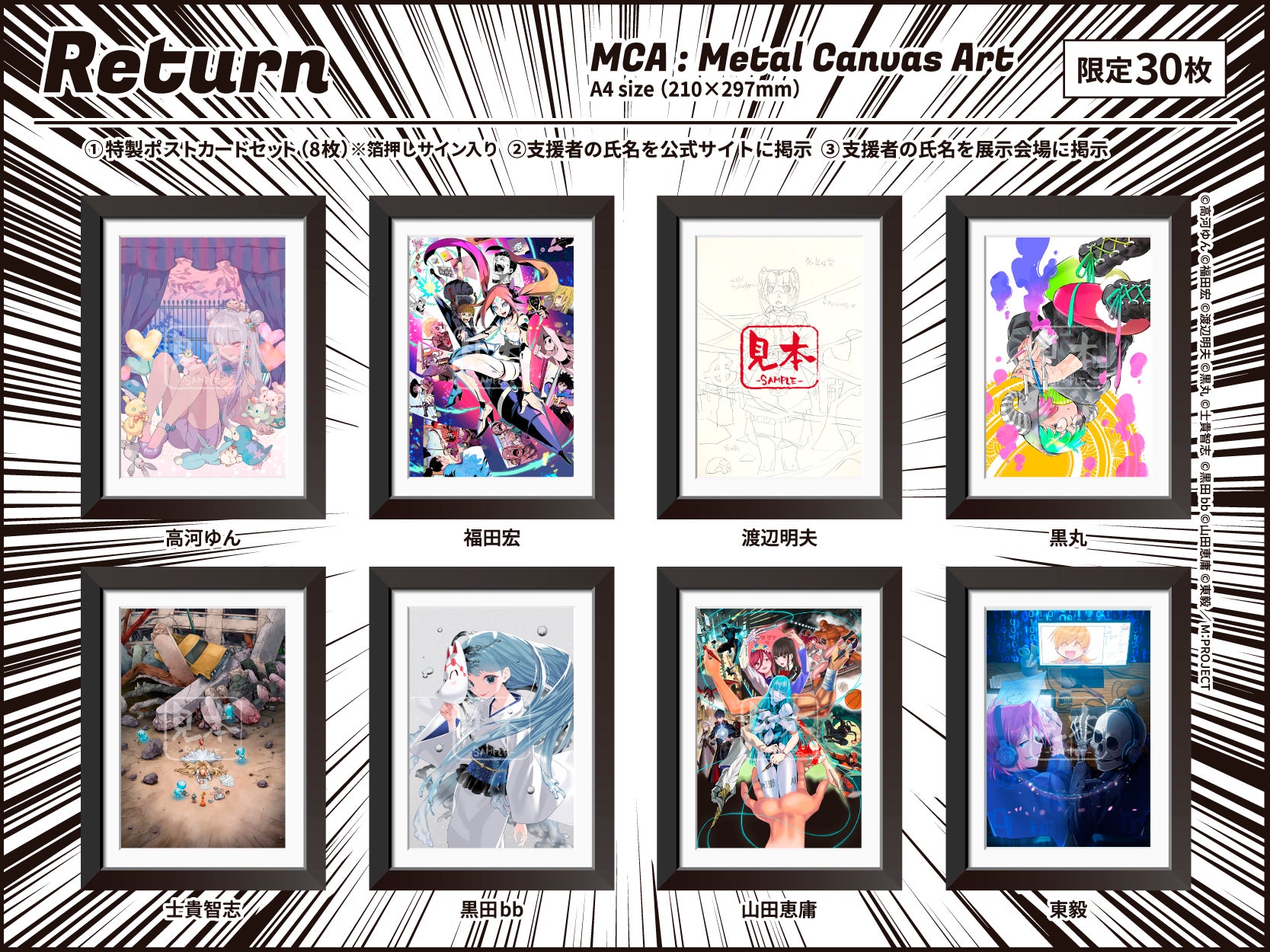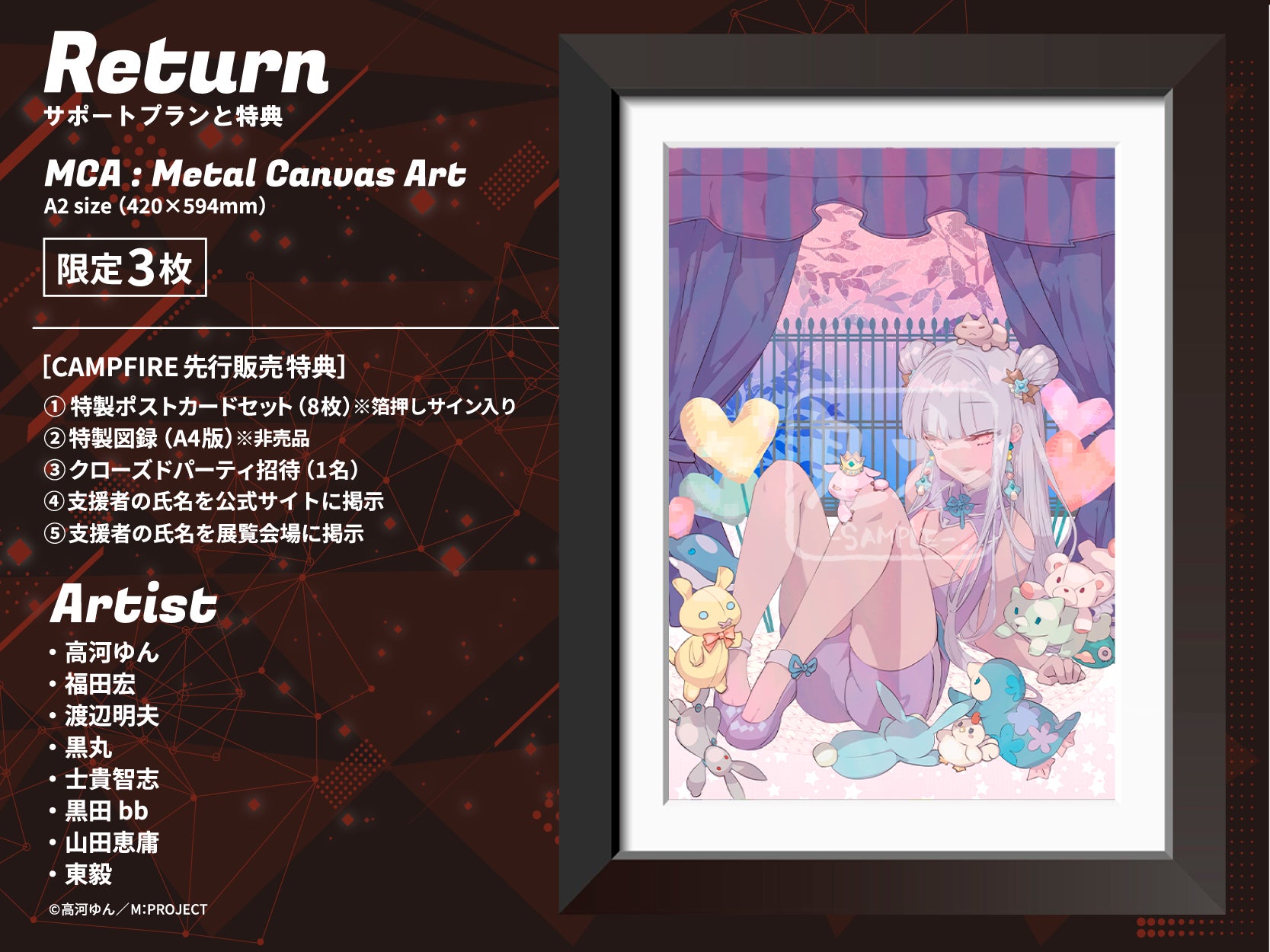 本プロジェクトは、クラウドファンディングプラットフォーム「CAMPFIRE」にて支援を募集します。支援者には、漫画家によるオリジナルアート作品や限定グッズなどの特別なリターンをご用意しています。詳細は以下のプロジェクトページをご確認ください。