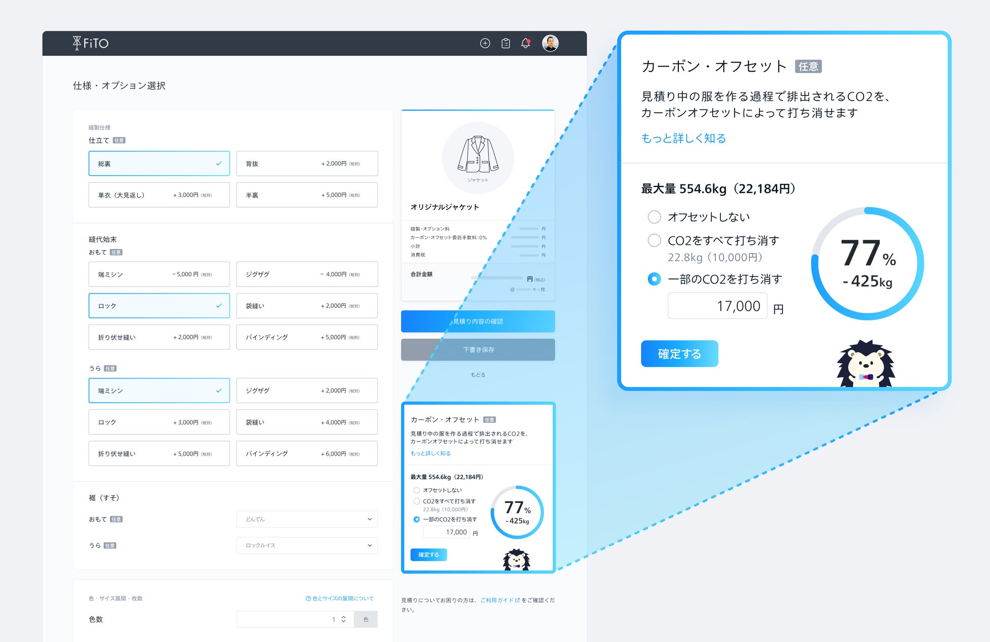 「縫製料金&カーボンの自動見積り・カーボンオフセットアパレル生産の【FiTO見積り】」