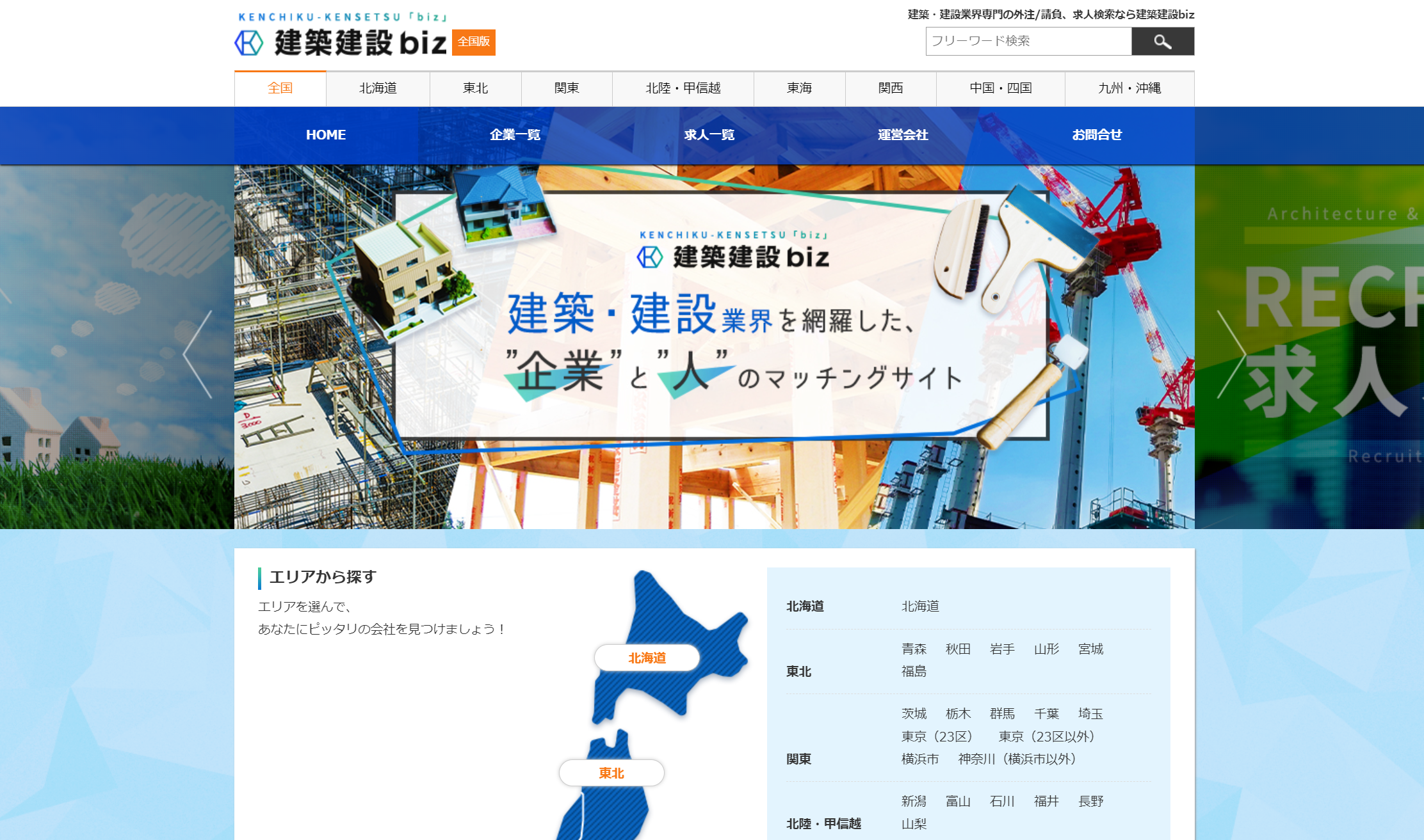 建築建設bizは、建築業、建設業専門の”企業”と”人”のマッチングサイトです。