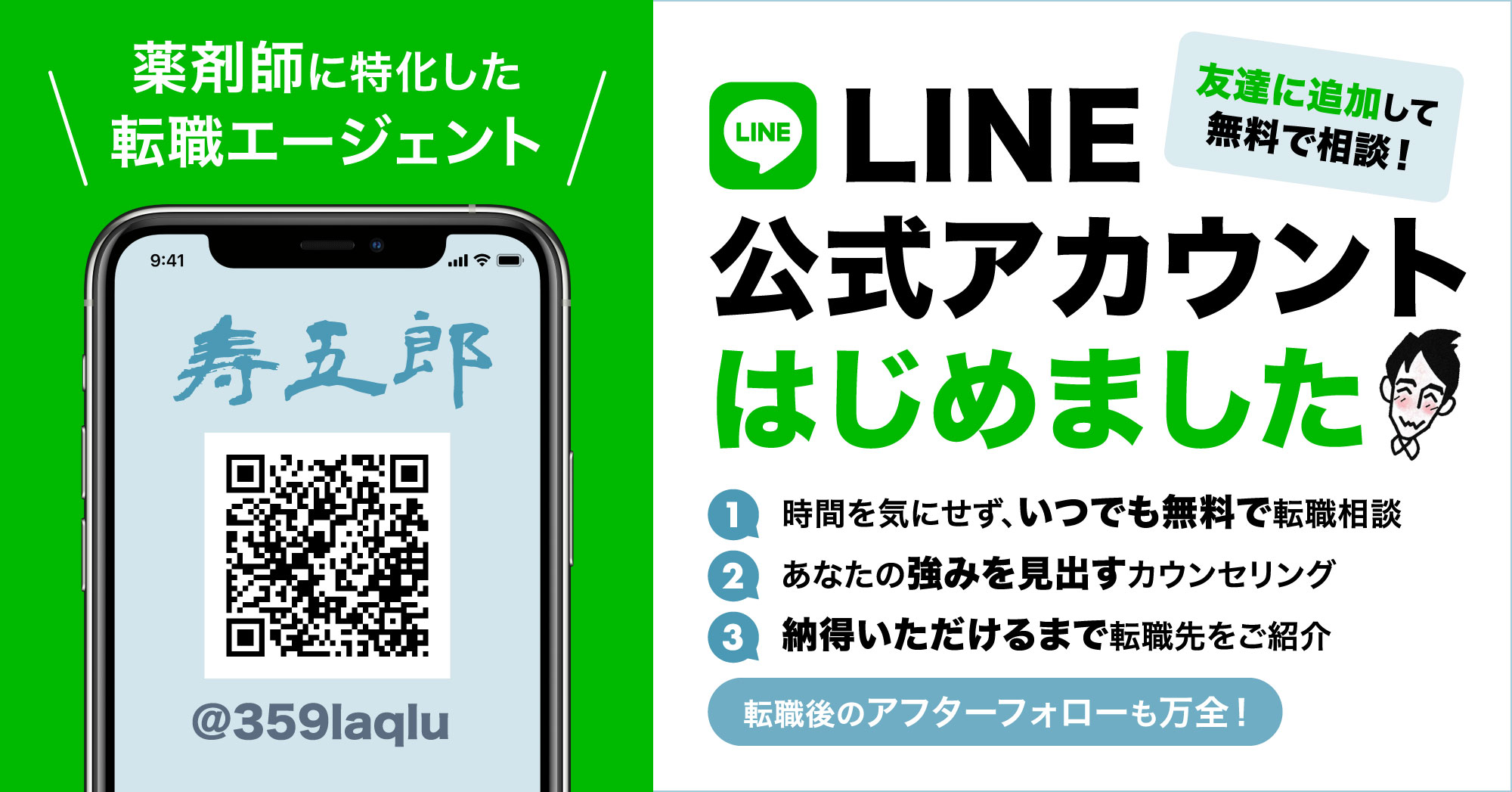 薬剤師に特化した人材紹介・採用コンサルティング事業を行なう、株式会社寿五郎(本社:東京都豊島区、以下 寿五郎) は、この度、コミュニケーションアプリLINEに『寿五郎LINE公式アカウント』を開設しました。『寿五郎LINE公式アカウント』は、会員登録不要の薬剤師向けキャリア相談窓口です。これまでに2,000人以上の薬剤師転職を支援してきた経験豊富なキャリアコンサルタントが、LINEのチャットを通して様々なお悩みやご相談にお答えします。
