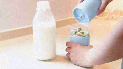 ①同じく充電してからカップに具材を入れてしっかり閉める