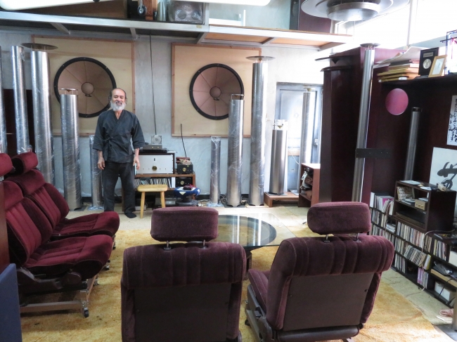 - 壁に80cmスピーカーを埋め込み、家が箱の役割を果たしている1000万円のシステム
