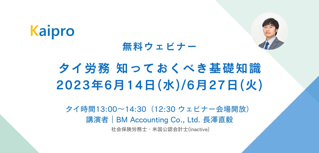 【6/14, 6/27】 カイプロ「タイ労務の知っておくべき基礎知識」を社会保険労務士とウェビナー解説