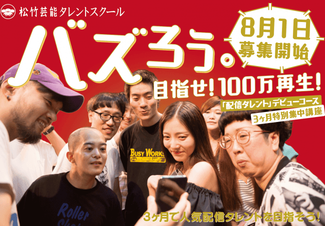【応募受付開始!】2019年10月、松竹芸能タレントスクール内に、「松竹芸能 配信タレントデビューコース」を開講いたします。当講座はWebでの配信に強い新世代のタレントを育成する、実践形式の芸能講座です。