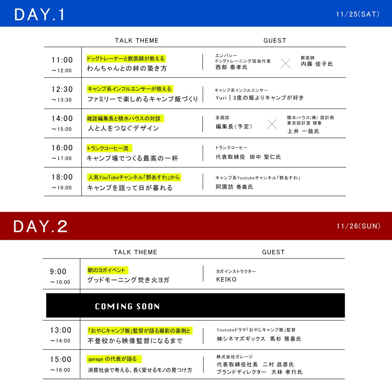 積水ハウスが大切にする「家族の絆」「我が家への愛着」というテーマを来場者へ楽しく吸収してもらうために様々なゲストがアウトドアを切り口としてトークショーを展開します。