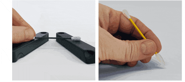 LastSwabは、両端に柔らかいゴム系弾性体が付いた、硬くてコンパクトなナイロン製の軸で構成されています。