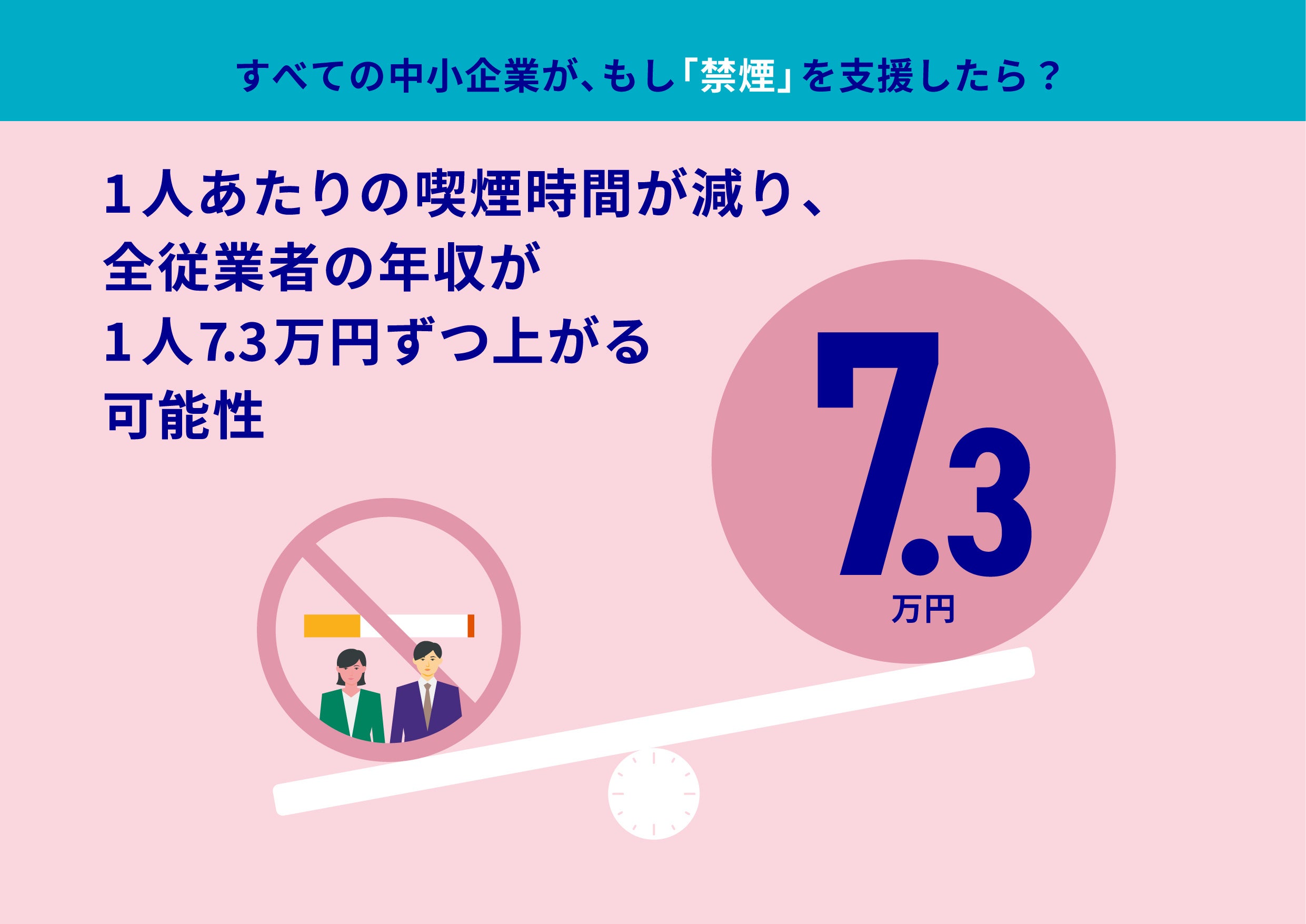 1人あたりの喫煙時間が減り、全従業者の年収が1人7.3万円ずつ上がる可能性