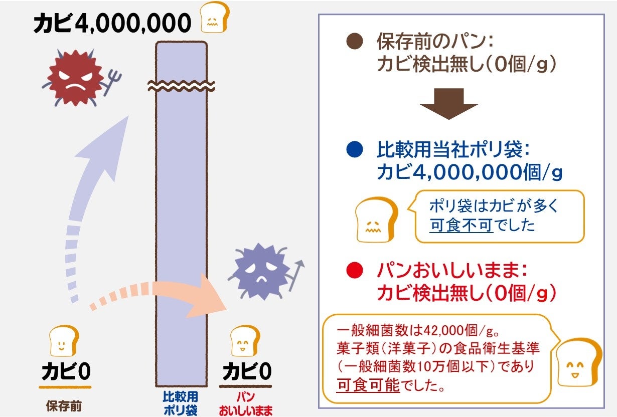 「パンおいしいまま」を使用することにより、通信販売でも限りなく出来立てに近い美味しいジャムパンが提供できるようになり、賞味期限も60日間と長くなりました。