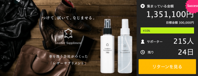 昨年11月28日にプロジェクトを開始し、わずか2日目で目標達成し1ヶ月で450%達成! この1本が革のメンテナンスを変える!!