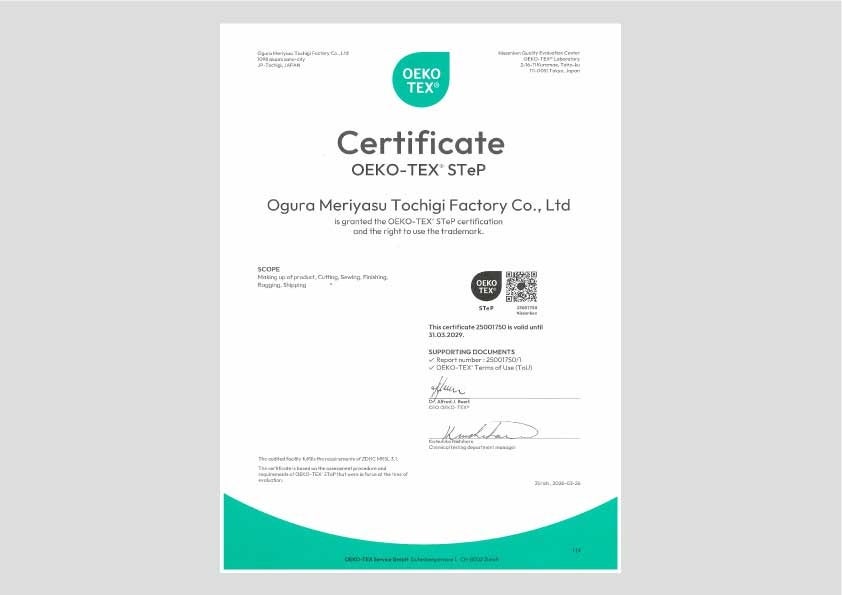 株式会社小倉メリヤス製造所(本社:東京都墨田区、代表取締役:小倉大典)の100%子会社である、小倉メリヤス栃木工場株式会社(栃木県佐野市)は、2026年3月、繊維製品の生産現場における持続可能性を証明する国際認証「OEKO-TEX® STeP(エコテックス® ステップ)」を取得いたしました。日本の縫製工場としての本認証取得は、今回が初めてとなります。