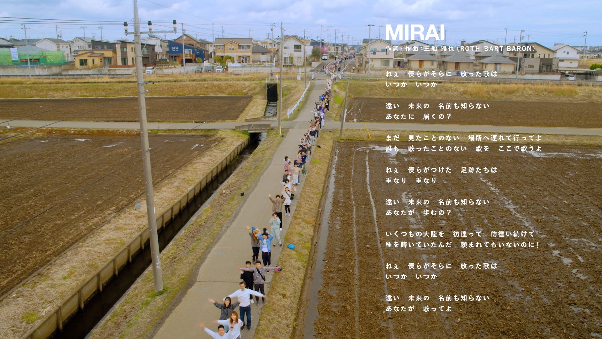 ROTH BART BARONに書き下ろしていただいた「MIRAI」。これを歌う一人一人が、未来を考え、未来に想い、未来と繋がっていく。未来があるつくばみらい市に住む市民がこれを最初に歌えることがありがたい。