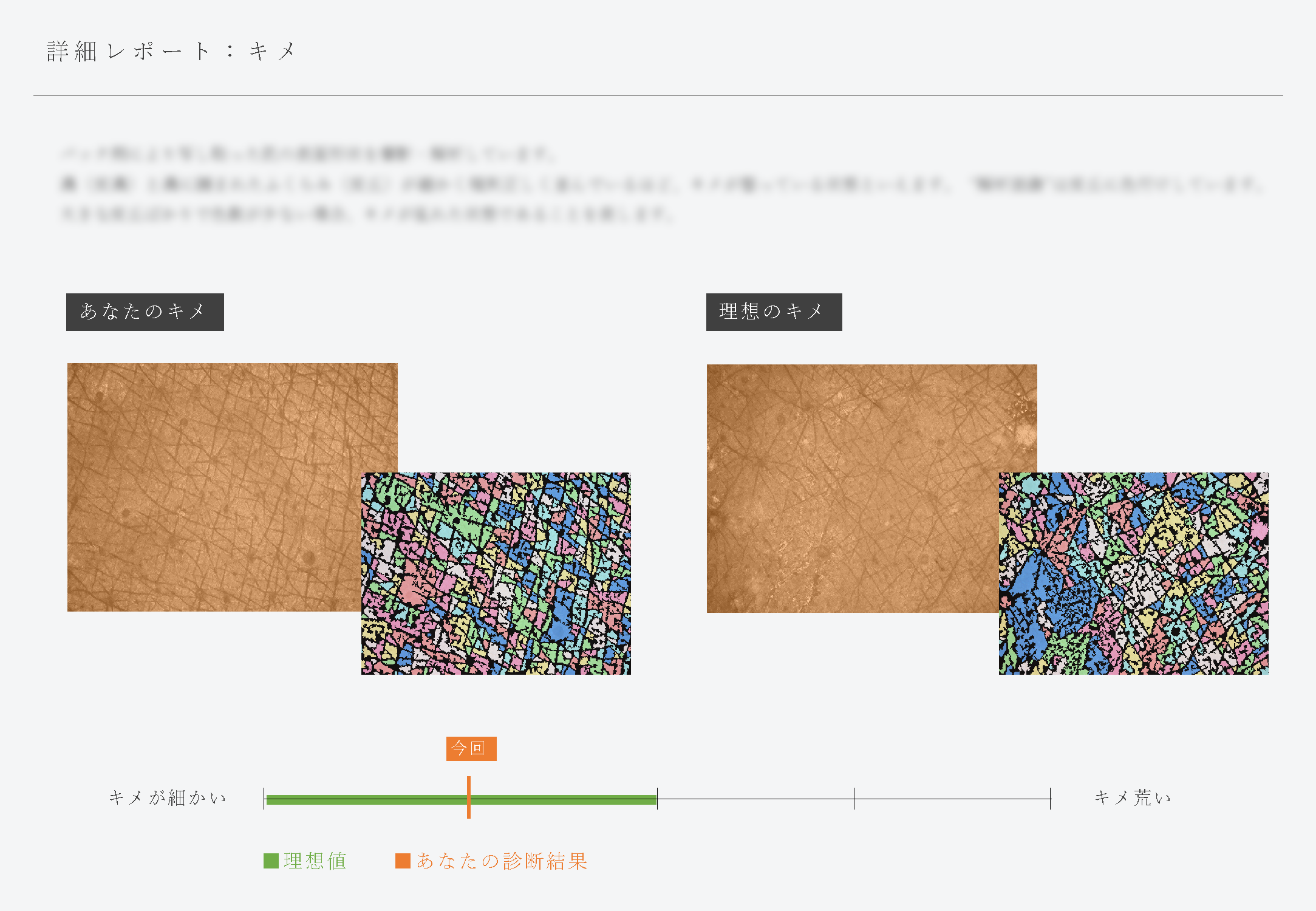 ・肌のキメ状態 ・毛穴の目立ち ・毛穴の歪み ・皮脂量 ・多重剥離