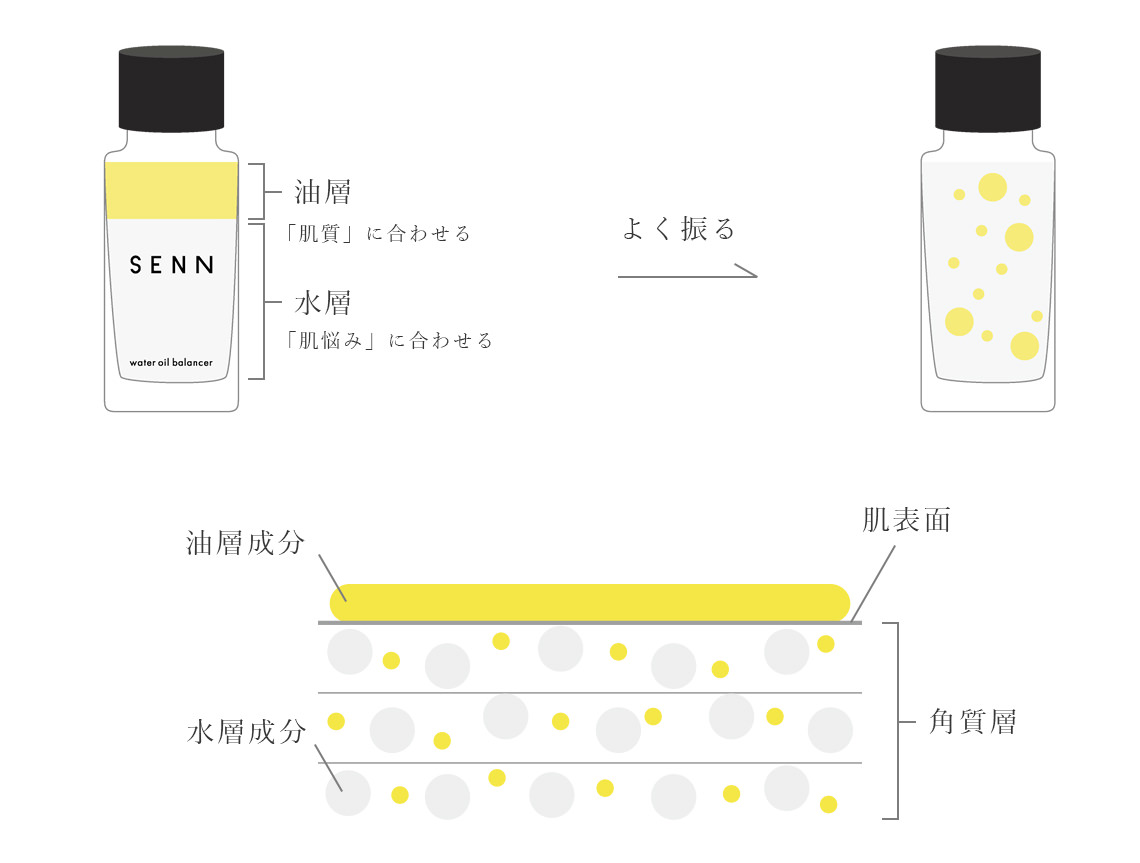 一、「肌質」に合わせた油層成分と「肌悩み」合わせた水層成分
