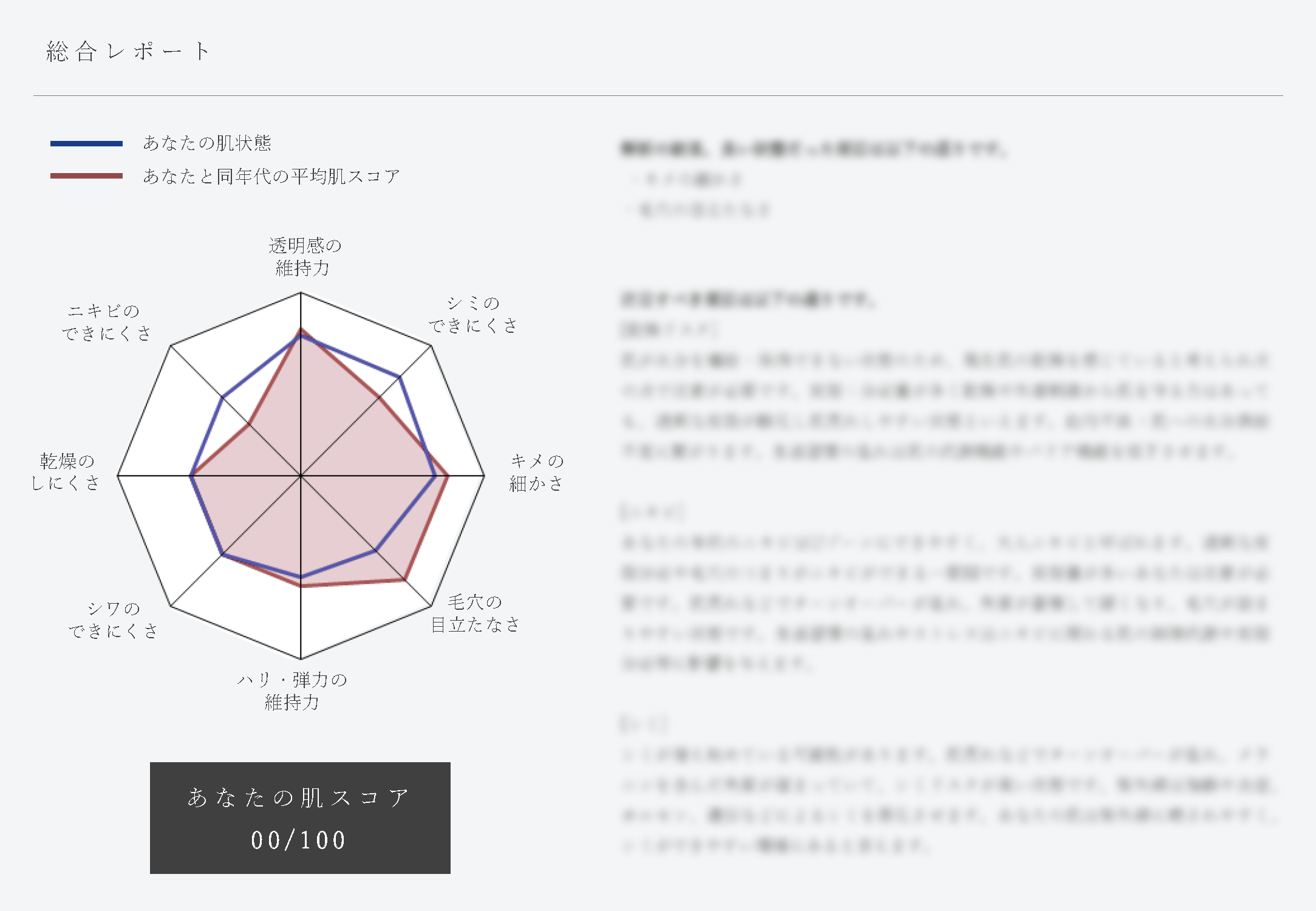 自分の肌を正しく知り、最適なスキンケアの選択ができるように、皮膚の専門機関が独自の基準で開発した肌解析キットをオプション(1,000円+税)でご用意しております。