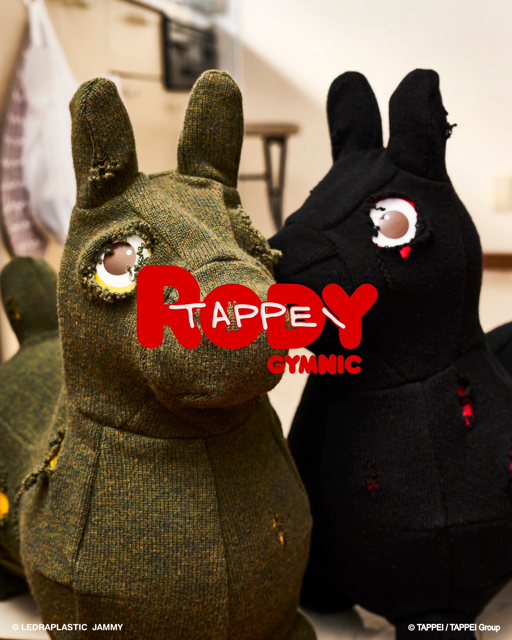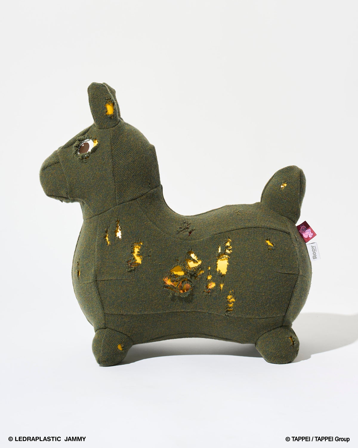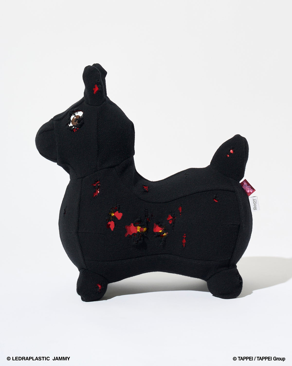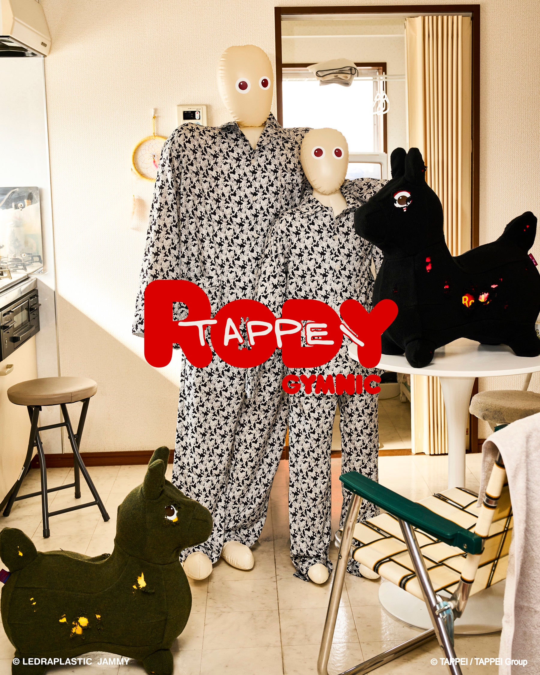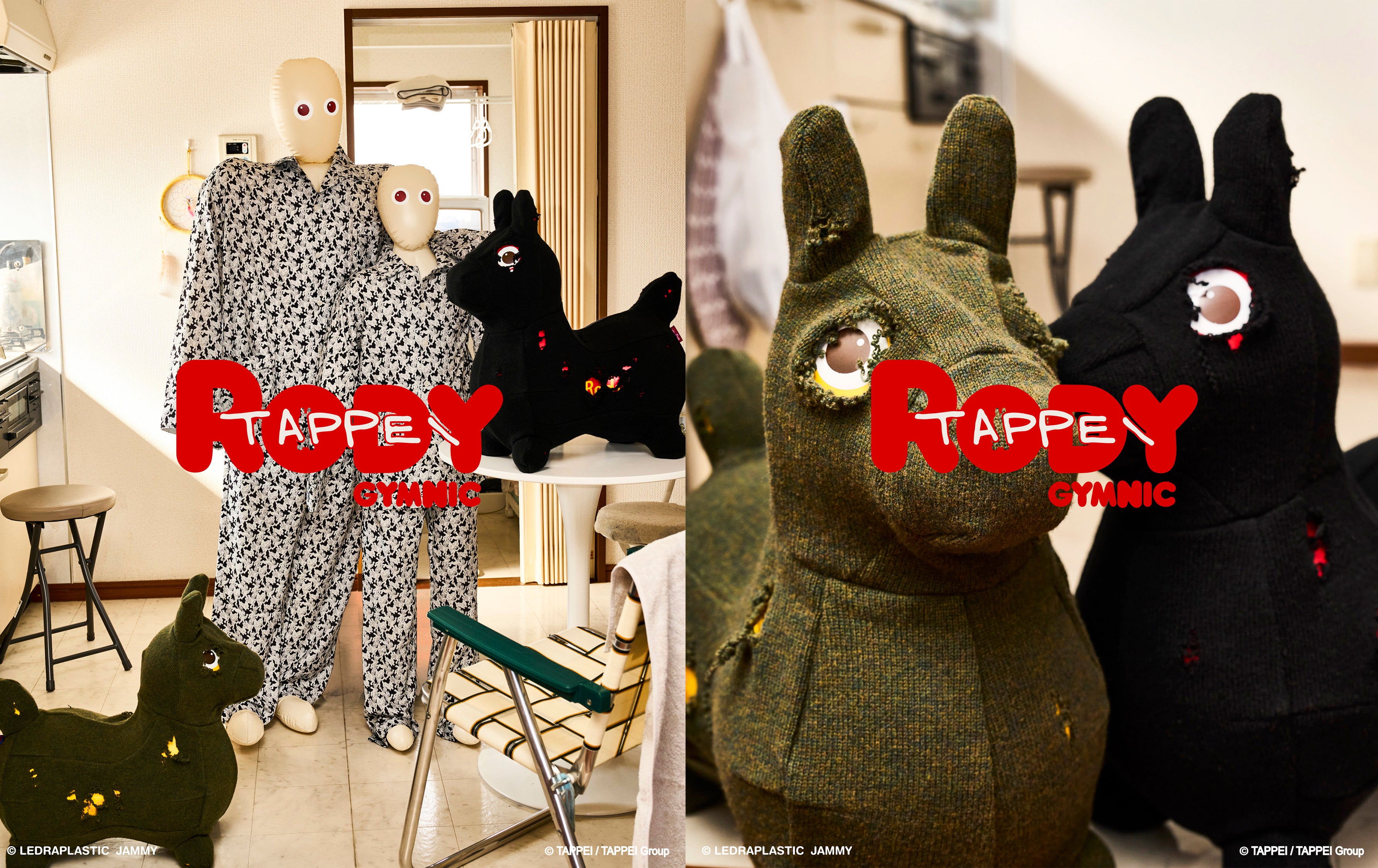 RODY本体にダメージ加工を施したニット生地を着用させ、ダメージ穴とRODY本体の組合せで、ダメージデニムから見えるタトゥーを表現。さらに大人と子供用のパジャマも。TAPPEIらしい遊び心の効いたデザインになっていて、着るだけでベッドルームやリビングがアートに変わりそう。