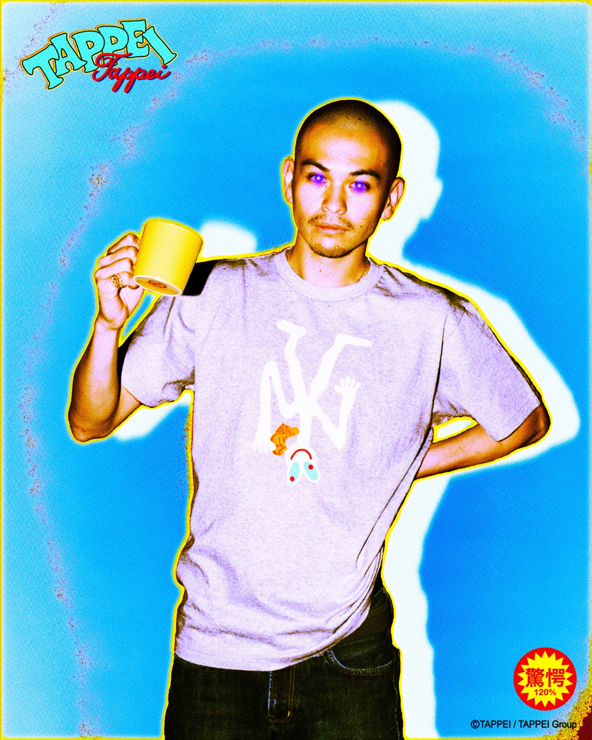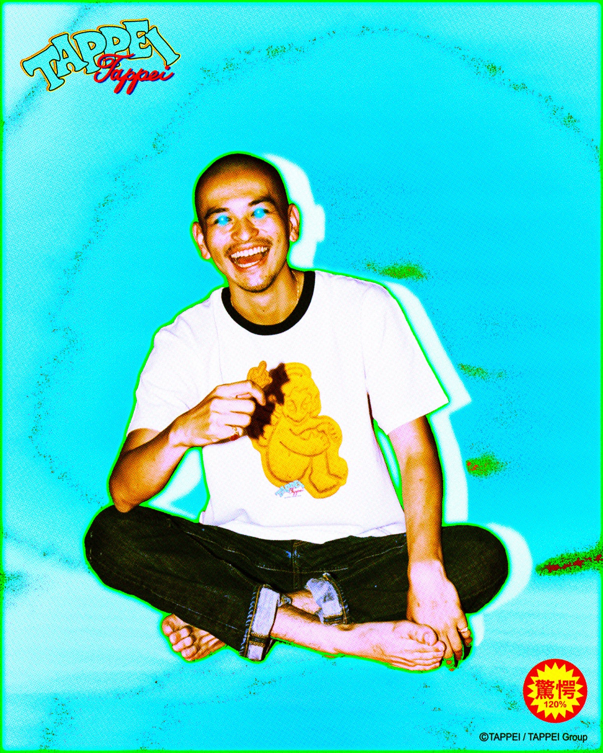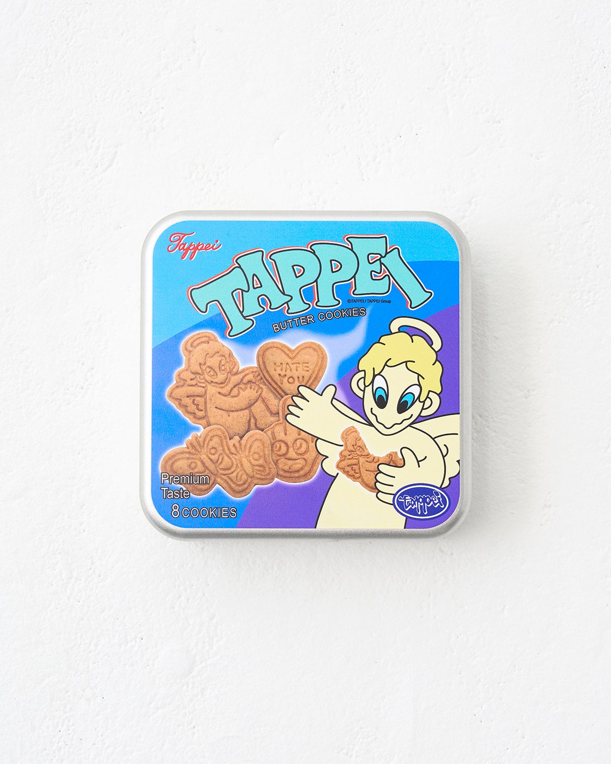 バター風味のオリジナルクッキーは、TAPPEIのメインモチーフ「天使のキャラ」や、タトゥーモチーフのデザインをかたどり、クッキー8枚とステッカー1枚のセット(2970円)で販売。コーヒー(1650円)は、秋田のKEIJYUKU COFFEEとタッグを組み、クッキーとの最高の相性を実現するため、柑橘系の香りとジューシーさを加えたビターチョコレートのような重厚な苦みと甘みを感じるように仕上げた。クッキーとコーヒーの販売開始にあわせてオリジナルデザインのTシャツ3種(130・150:5500円、M〜XL:6600円)を展開する。