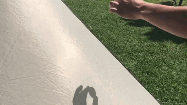 既存のタープと呼ばれるものは山やキャンプ場など本格性の高いものがスタンダードです。タープ面はとても大きく、ロープもとても長いです。それに対し当ミニタープはタープ面の直径わずか1.5mとコンパクトです。またスクエアタイプなのでどれが前方かを迷う必要がなく、ペグ打ち箇所もわずか4か所です。そしてロープは絡まない長さを追求し、50cmが3本と180cmのものが1本の計4本のみです。ポールも1本のみなので設営テクニックはほぼ不要です。