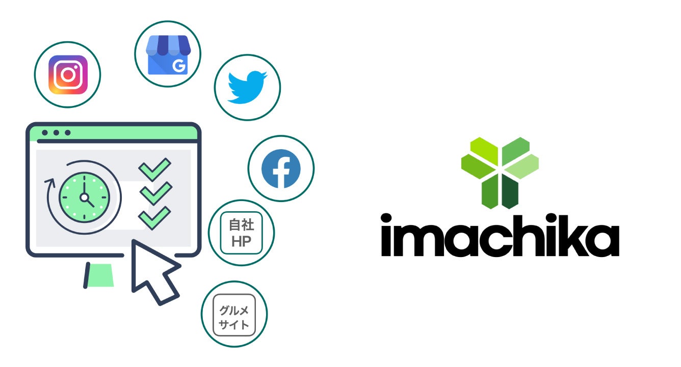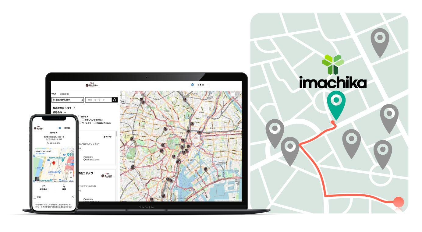 「店舗自動集客ツールimachika」は店舗検索から来店促進につながるように集客改善ができるツールです。位置情報をもとに店舗が見つかる「店舗検索サービス」、Googleビジネスプロフィールや各SNS、グルメサイトと連携させて一括更新・管理できる「連携管理サービス」、QRコードでカンタンにWEB会員カードを作成できる「顧客管理サービス」の3サービスを提供しています。