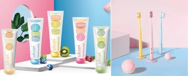 ニュージーランド産のプロポリスや天然由来成分が配合されたハミガキ粉『マカロン ナチュラル トゥースペースト』と、ナノマグネット吸着技術で立てたまま保管ができる機能性やデザインにこだわった歯ブラシ『マカロン ワイドウルトラクリーン マグネティック歯ブラシ』を展開します。