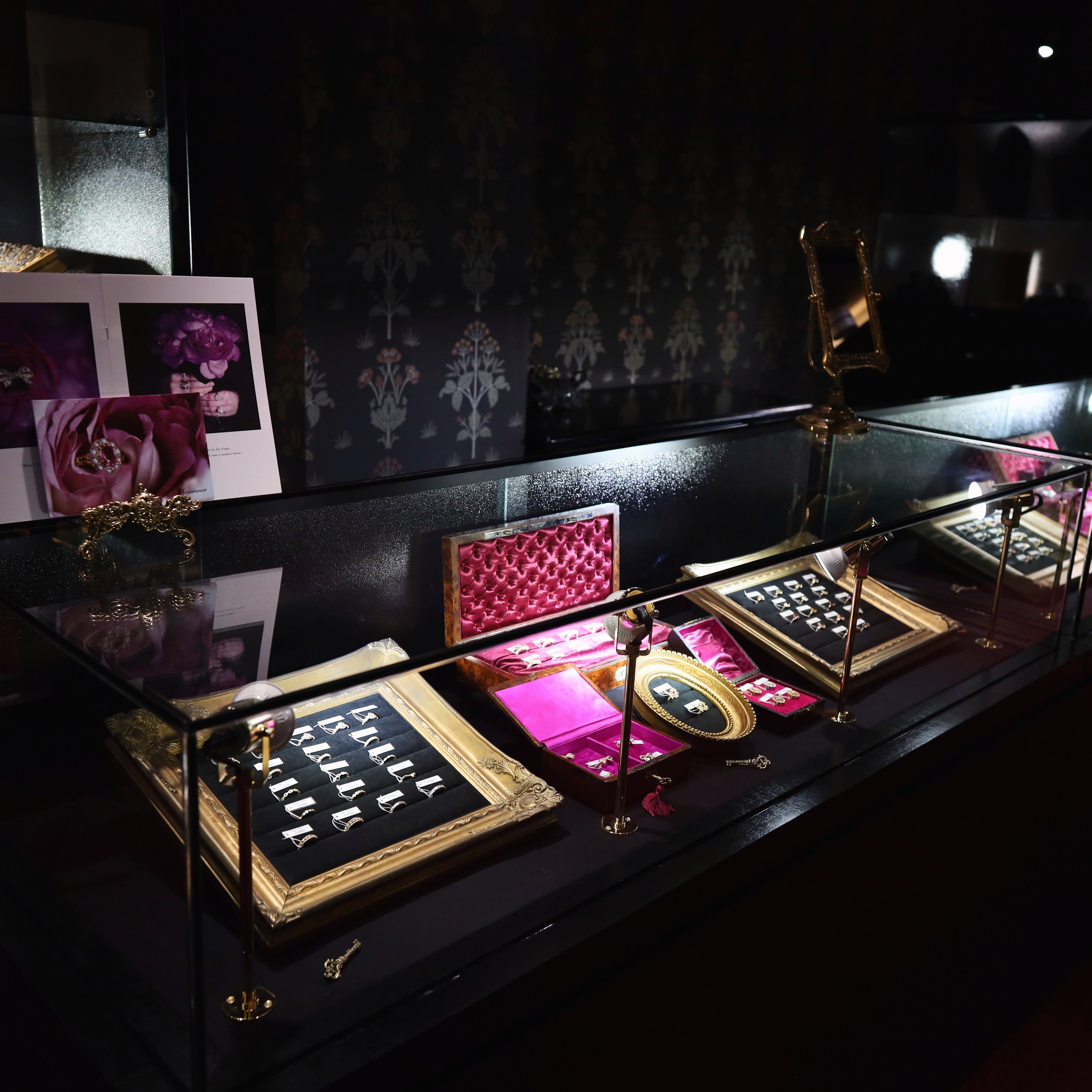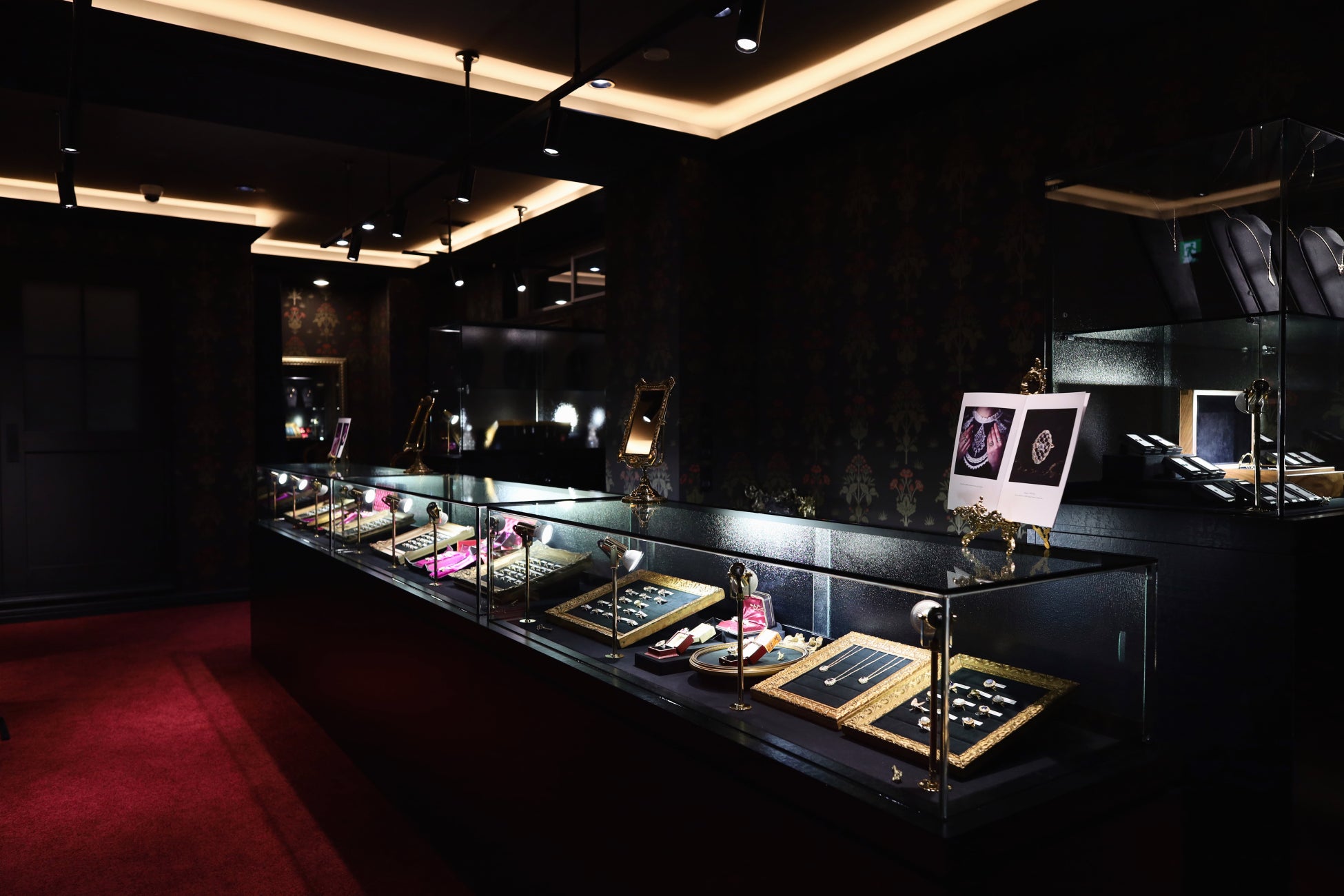細かく微調整された少し暗めのライティングで、大きなジュエリーボックスを開けた時のようなときめく空間に。