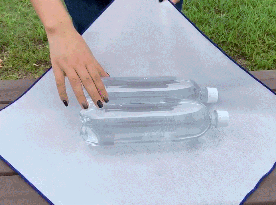 素材は表生地がマイクロファイバーで裏生地が極細のパイル地になっており、生地を重ねると摩擦により貼り付き、強い粘着力を発揮します。
