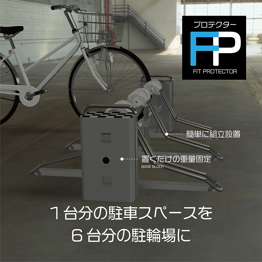 世間を騒がすコロナ禍、通勤や観光の形にも変化がありました。通勤に自転車を奨励する会社も増え始め、急遽駐輪場を設ける機会も増えました。「ロダンFP/両側6台セット」は乗用車1台分の駐車スペースに置くだけで6台分の駐輪エリアを簡単に設けることが出来ます。