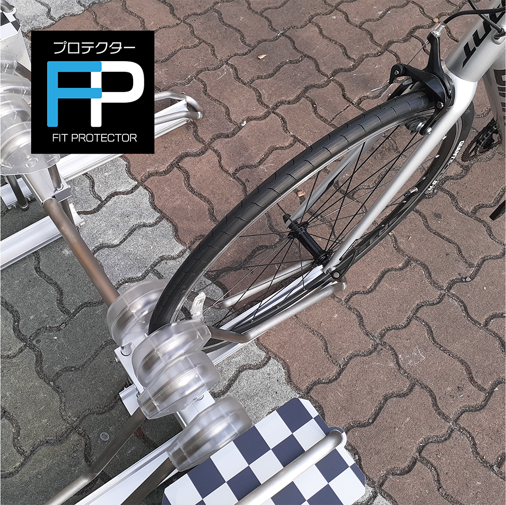 ◇軽量のロードバイクのようなスポーツバイクは前輪(もしくは後輪)タイヤの一部をプロテクターでキャッチ!下の写真のように自転車のリムやスポークがラックとの接触を軽減する構造で安心です!