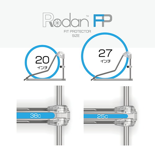 新開発の3Dデザインの「フィット プロテクター」と「ラックレール」が様々なタイヤサイズに対応します。ラック本体はステンレス製でロボットベンダーによる曲げ加工です。シームレスで強靭なラックにフィットプロテクターを備えたモデルが「ロダンFP」です。