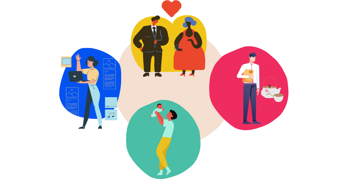 ※画像はジェンダーバイアスをテーマにしたもの。男性が青、ピンクなどの色に囚われないこと、エンジニアが男性の仕事、秘書が女性の仕事、家事育児が女性だという思い込みを払拭するもの。