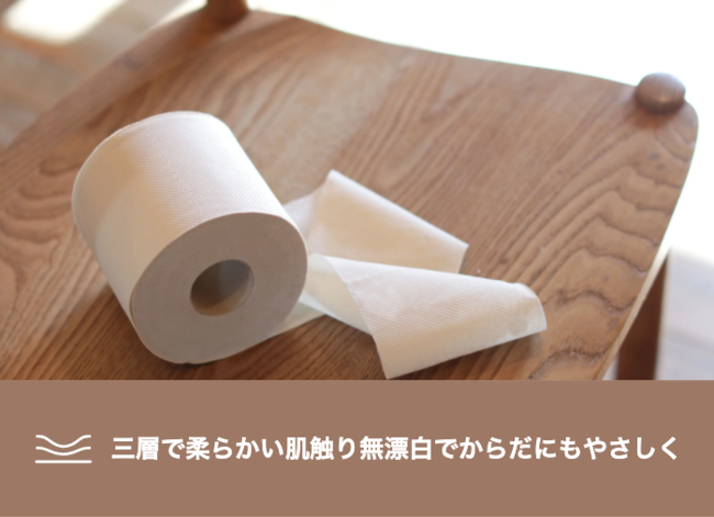 漂白剤を使用しない、ナチュラルな色合いの無漂白、体に優しいトイレットペーパーです(3枚重ね)。