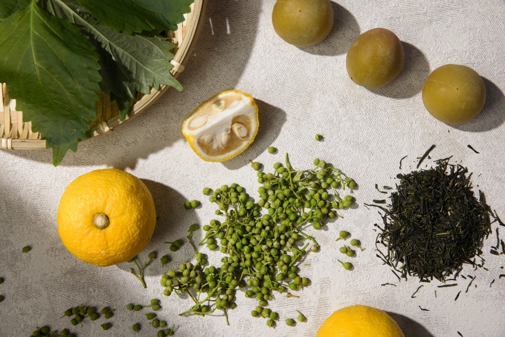本商品は、ジェニパーベリー・コリアンダー・アンジェリカといったヨーロッパの伝統的な原料と土地を感じられる良質な素材をセレクトし、蒸溜した重厚感あふれるロンドンジンをベースに、ジャパニーズボタニカルを組み合わせました。今回のジャパニーズボタニカルは50種類の候補から、他のボタニカルとの相性などを基準に厳選した、柚子・山椒・煎茶・紫蘇・梅の5種類を使用しました。隠し味として蒸溜した純米酒を少し加えています。