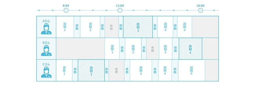 訪問看護事業所は、担当する利用者の病状変化などで緊急時対応や訪問回数の調整をしながらフレキシブルに対応しなければならない為、スケジュール調整に莫大な作業コストがかかっています。