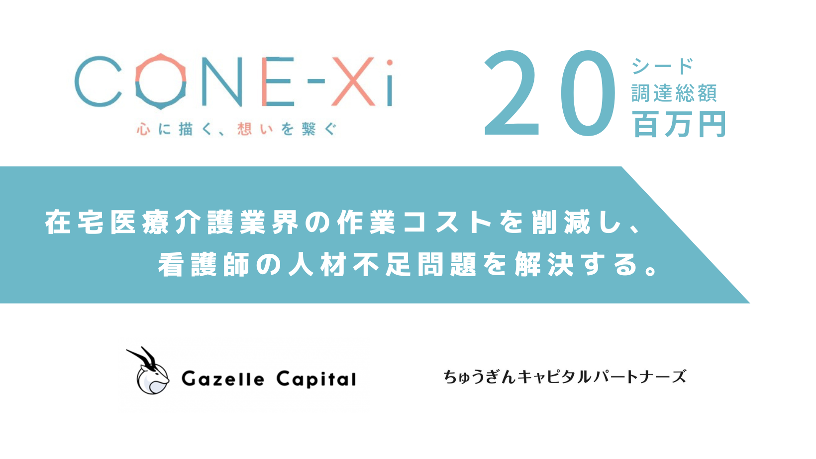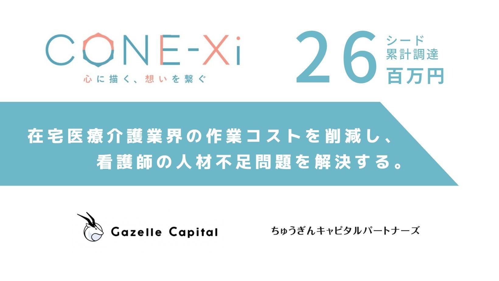 株式会社Cone・Xi (コネクシー) (本社:岡山県岡山市 代表取締役:高木 大地、以下「当社」)は、ガゼルキャピタルをリードインベスターとして、ちゅうぎんインフィニティファンドを引受先とする第三者割当増資を実施しました。今回の資金調達により、創業からの累計調達額は26百万円となりました。