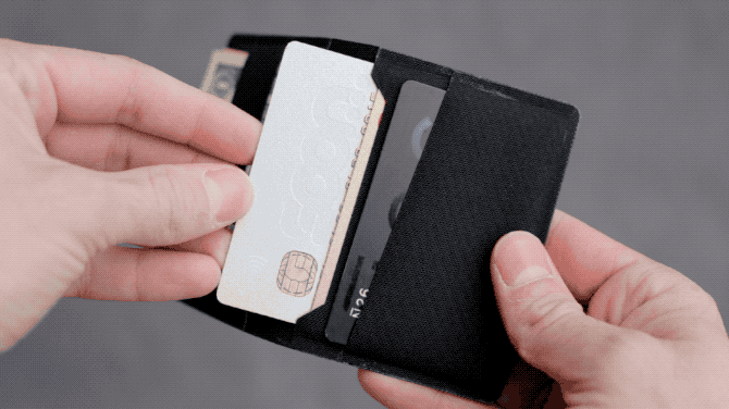 この薄さ7mmのミニマル財布には、10枚のカードと紙幣が収まります。