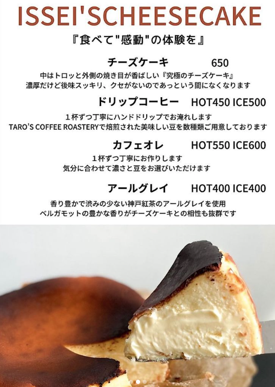 ワンデイカフェ②「ISSEIの究極のチーズケーキカフェ」(1回開催)