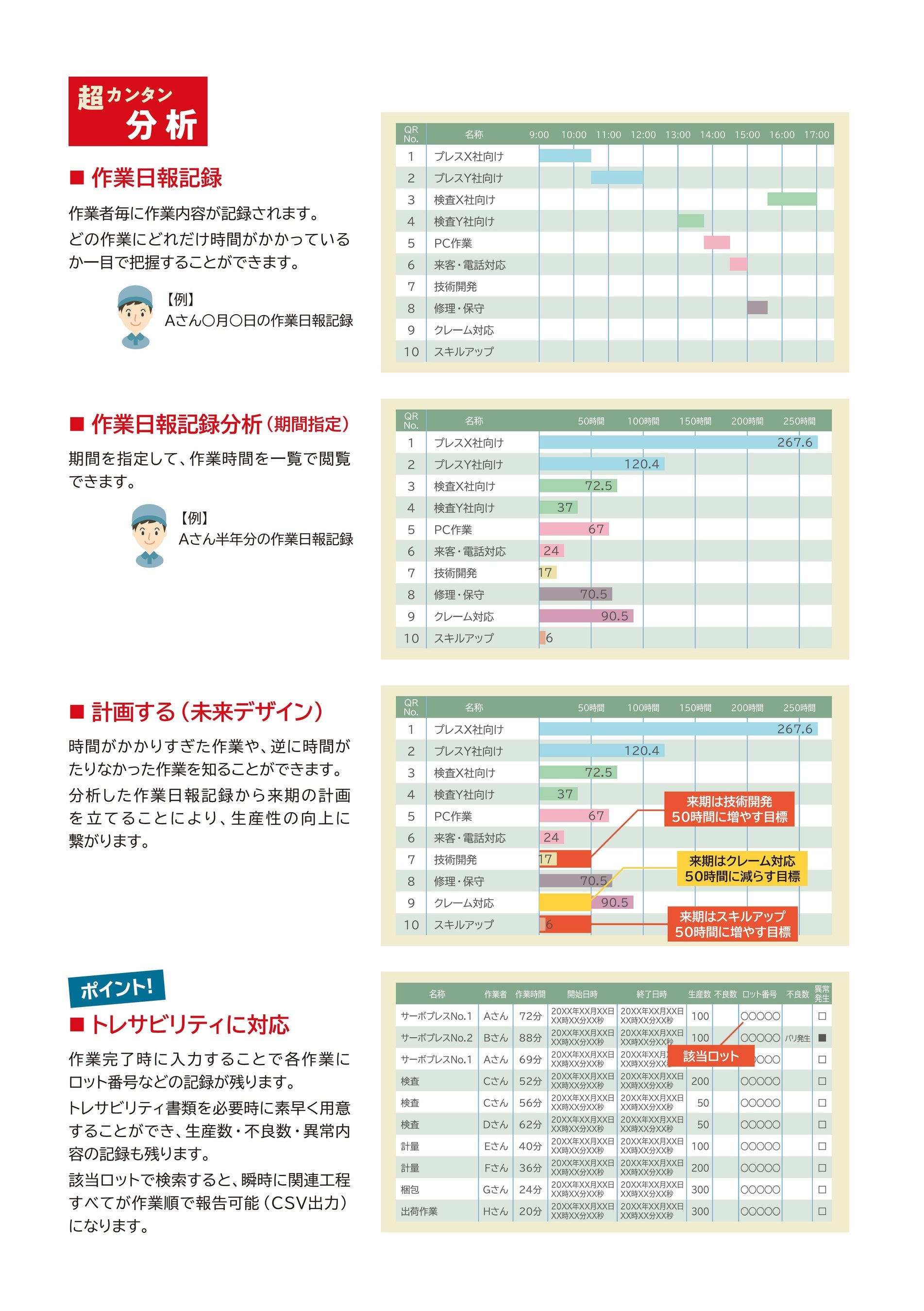 これにより、多種多様な製造業種に向けてのカスタマイズはもちろんのこと、「いつ・誰が・何を・どれ位した?」というシンプルな時間管理ツールとしての幅広い提案が可能となり、