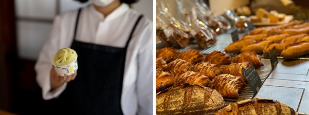 鎌倉のジェラテリア「SANTi」(World Best Gerato Chef 100に入賞)により、西伊豆のレモンやサツマイモ、桜庭や酒麹のジェラートをご提供しています。今後、当敷地でとれる白枇杷、甘夏を用いたジェラートもご提供予定です。