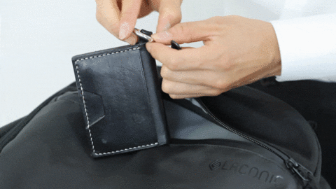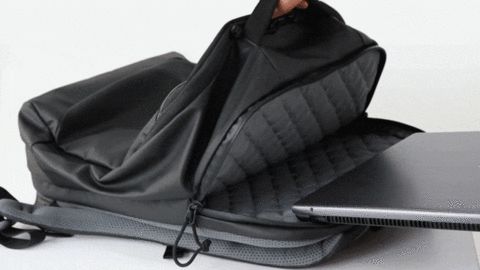 従来のバックパックは、物が入ると重量によりバッグが垂れ下がり肩に荷重がかかるのに対し、ラコニックの無重力バックパックは、バッグが垂れ下がらず、荷重を背中や肩に効率よく分散させます。