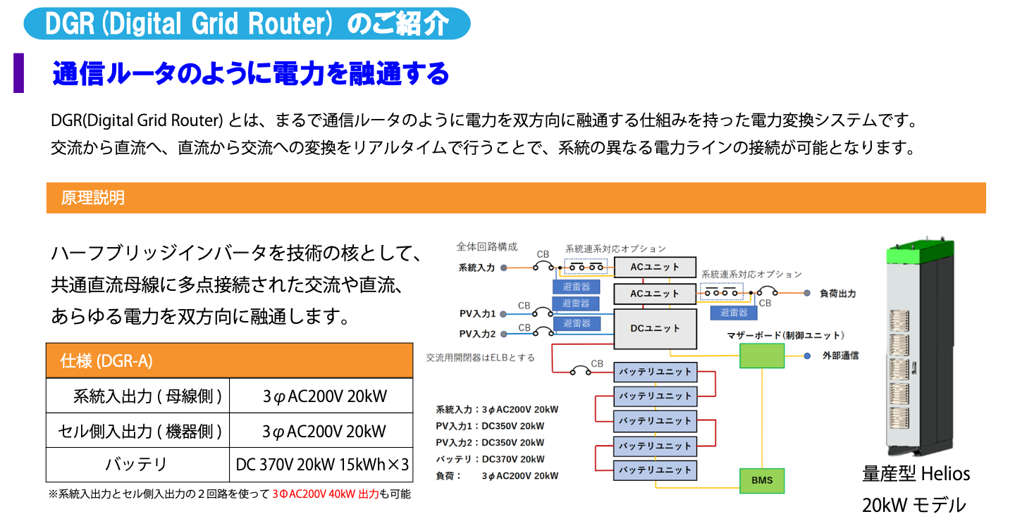 【デジタルグリッドルータ(DGR) Helios 20kW プロトタイプ概要】