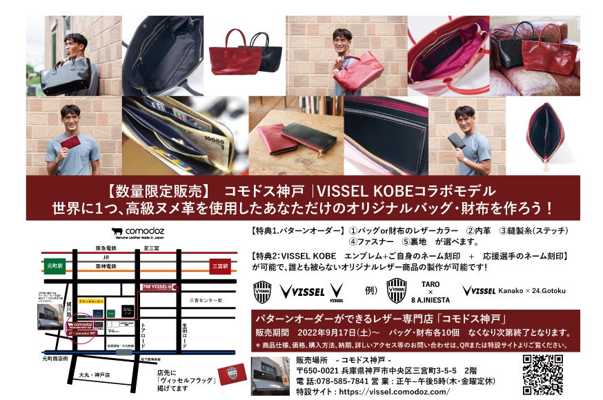 「コモドス神戸 |VISSEL KOBEコラボモデル 世界に1つ、最高級ヌメ革を使用したあなただけのオリジナルバッグ・財布を作ろう!」