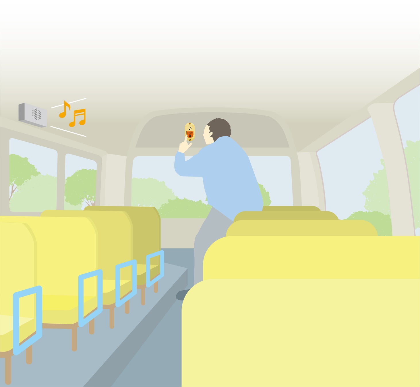 当社は、バス用電装機器のトータルサプライヤーとして、バスにまつわる様々な製品開発に取り組んでいます。送迎用バスで起こった痛ましい事故の再発防止に貢献したいという想いから、長年携わってきたバスの押しボタンを活用し、本装置を開発しました。バス事業者へのこれまでの納入実績・ノウハウを活かし、取付やメンテナンスが容易であることが特徴です。