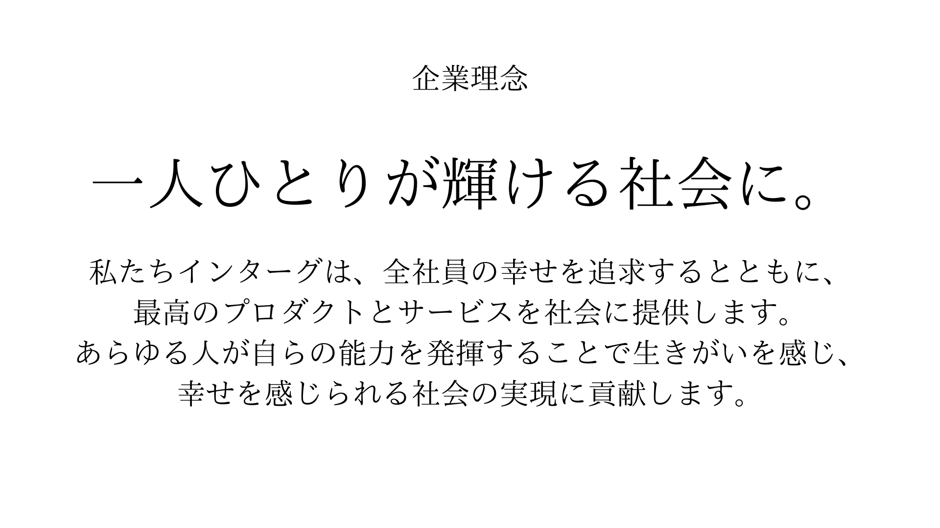 私たちインターグは、全社員の幸せを追求するとともに、最高のプロダクトとサービスを社会に提供します。