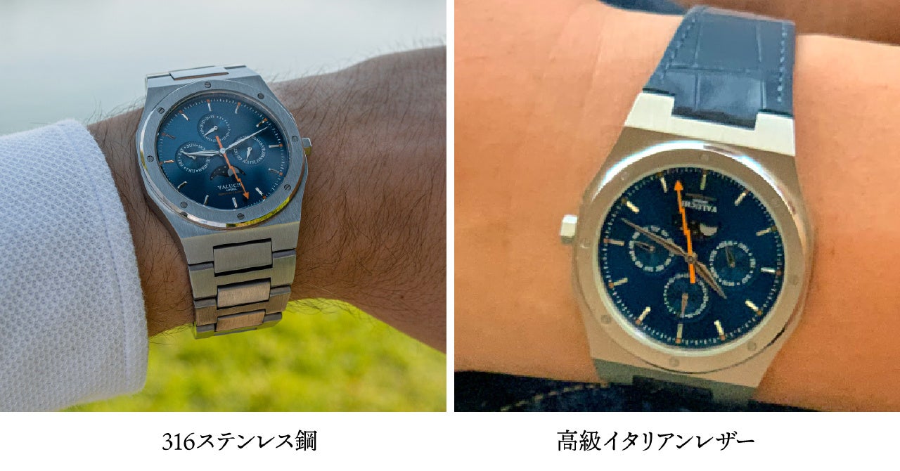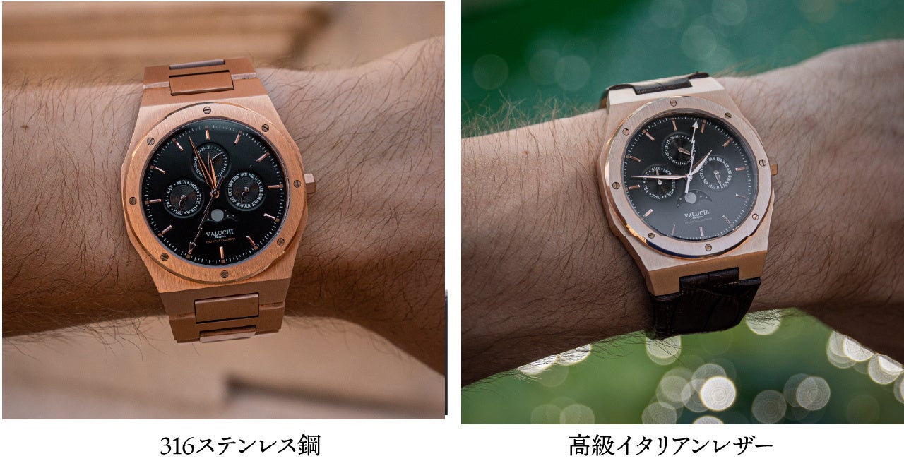 2・材料は316ステンレス鋼、硬化ミネラルクリスタル、高級イタリアンレザーのみを使用したこだわり。