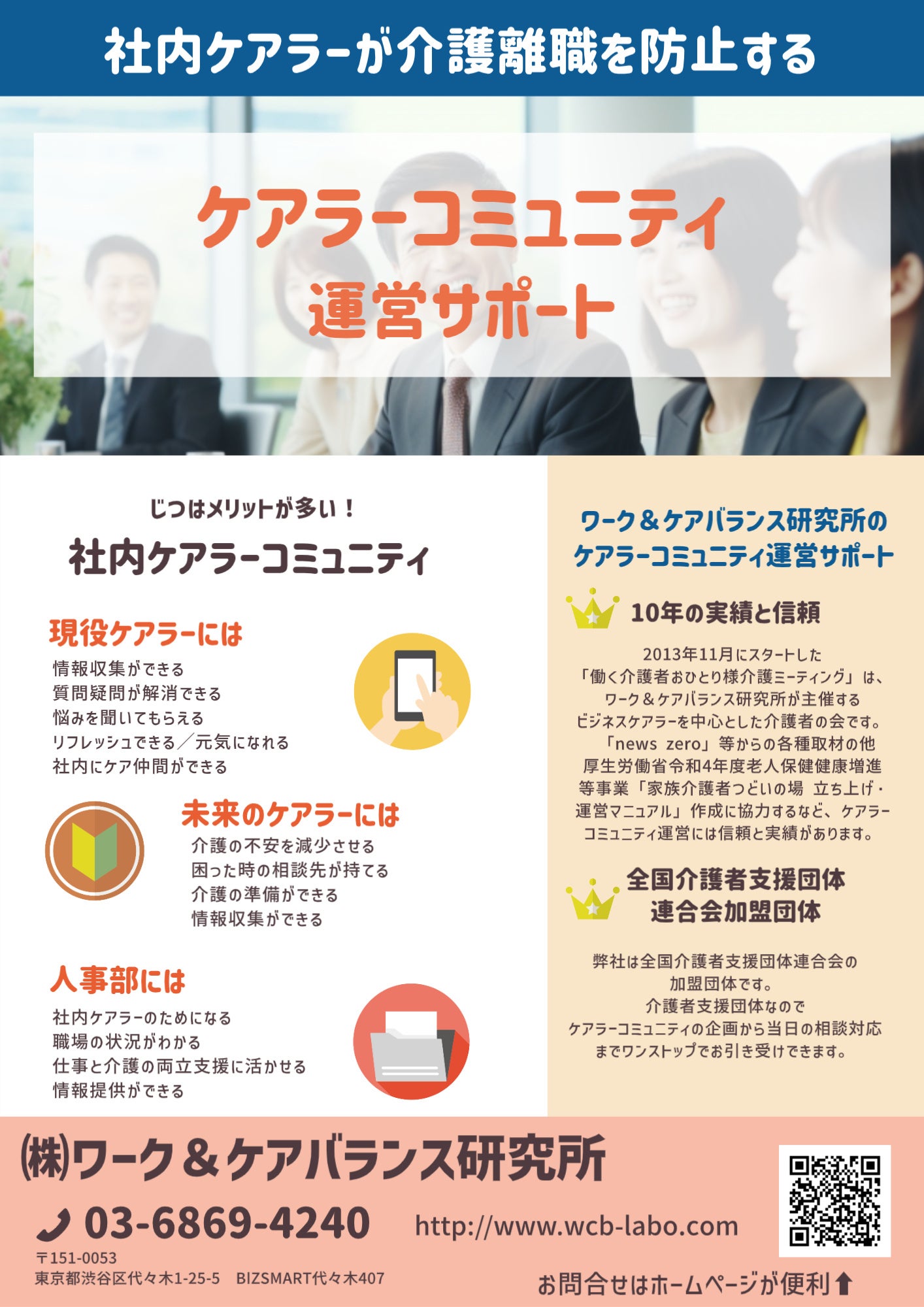 株式会社ワーク&ケアバランス研究所(東京都渋谷区、代表 和氣美枝)は、企業が取り組む仕事と介護の両立支援の一環として「社内ケアラーコミュニティ運営サポート」に年間計画付プランを開始いたします