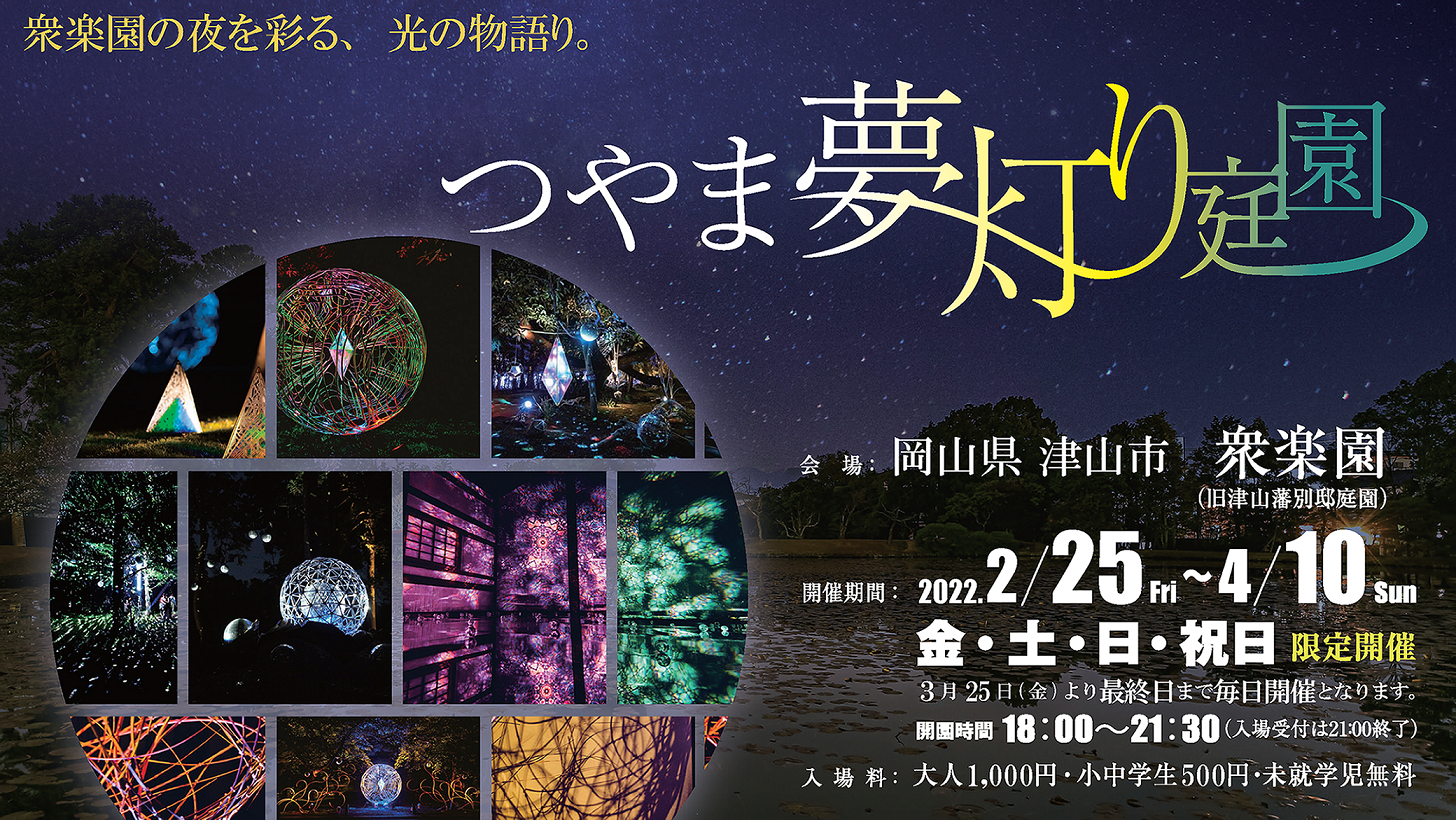 会期決定!2月25日(金)~4月10日(日) 岡山県・津山市の名勝「衆楽園」で光×アートのイベント「つやま夢灯り庭園」